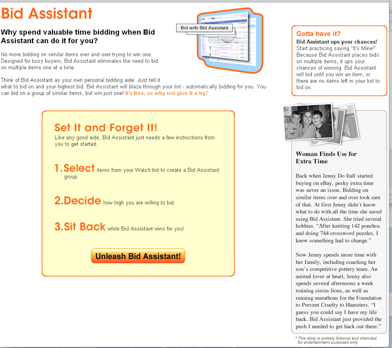 I was able to create some fun and engaging marketing copy for eBay’s bid assistant product.